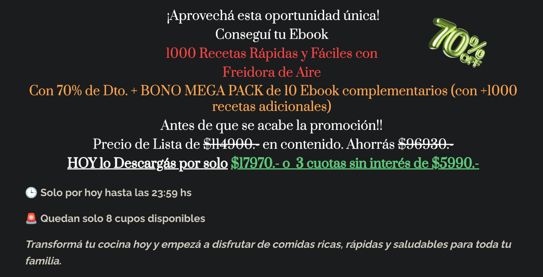 ⚠️ Quedan solo 8 packs disponibles con el 70% de Descuento , las 3 cuotas y el Bono incluido.